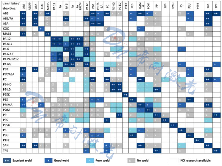 塑料激光焊接原理:通過壓力將兩個待焊接塑料零部件結合在一起,將一束紅外激光定位于待粘結部位,激光束透過上層透光材料,被下層材料吸收,吸收的激光能量轉換成熱能,由于兩層材料被壓在一起,熱能從吸收層傳導到透光層上,使得兩層材料熔化并結合。同時由于材料本身的熱膨脹擴張產生內部壓力,內部壓力與外部壓力共同作用確保了兩部分的堅固焊接。對于產品本身是不吸光的下層材料,需要添加吸收劑進行處理。